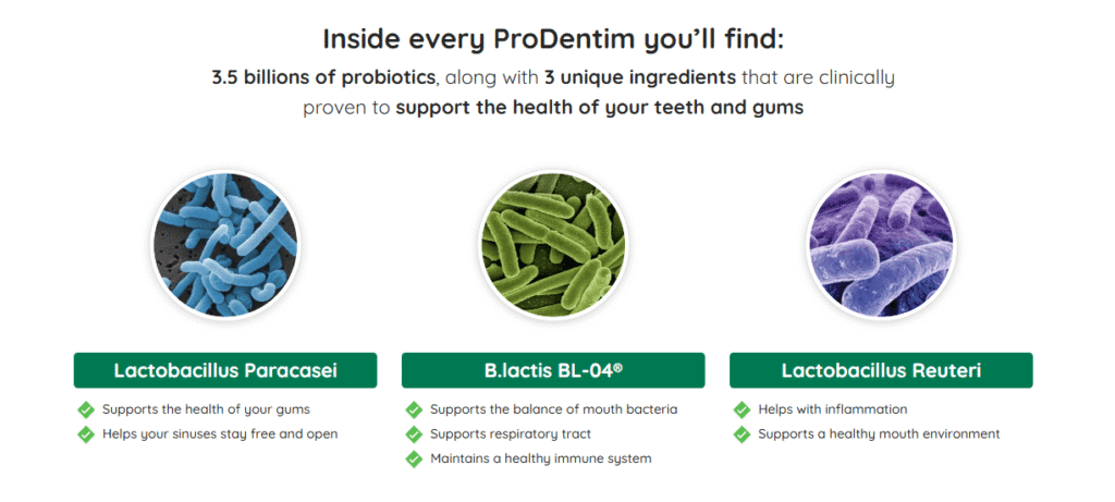 It’s the only product in the world with a unique blend of 3.5 billion probiotics and nutrients, specially designed to repopulate your mouth with good bactéria.every prodentim you chew will support the good health of your gums and teeth